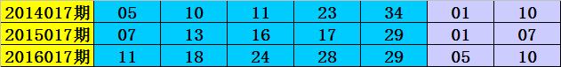 在2014017期-2016017期同周期奖号中,前区连码出现3期,同尾号出现2期,号码奇偶比9:6,大小比7:8,号码012路比2:6:7,前区开出13个号码。